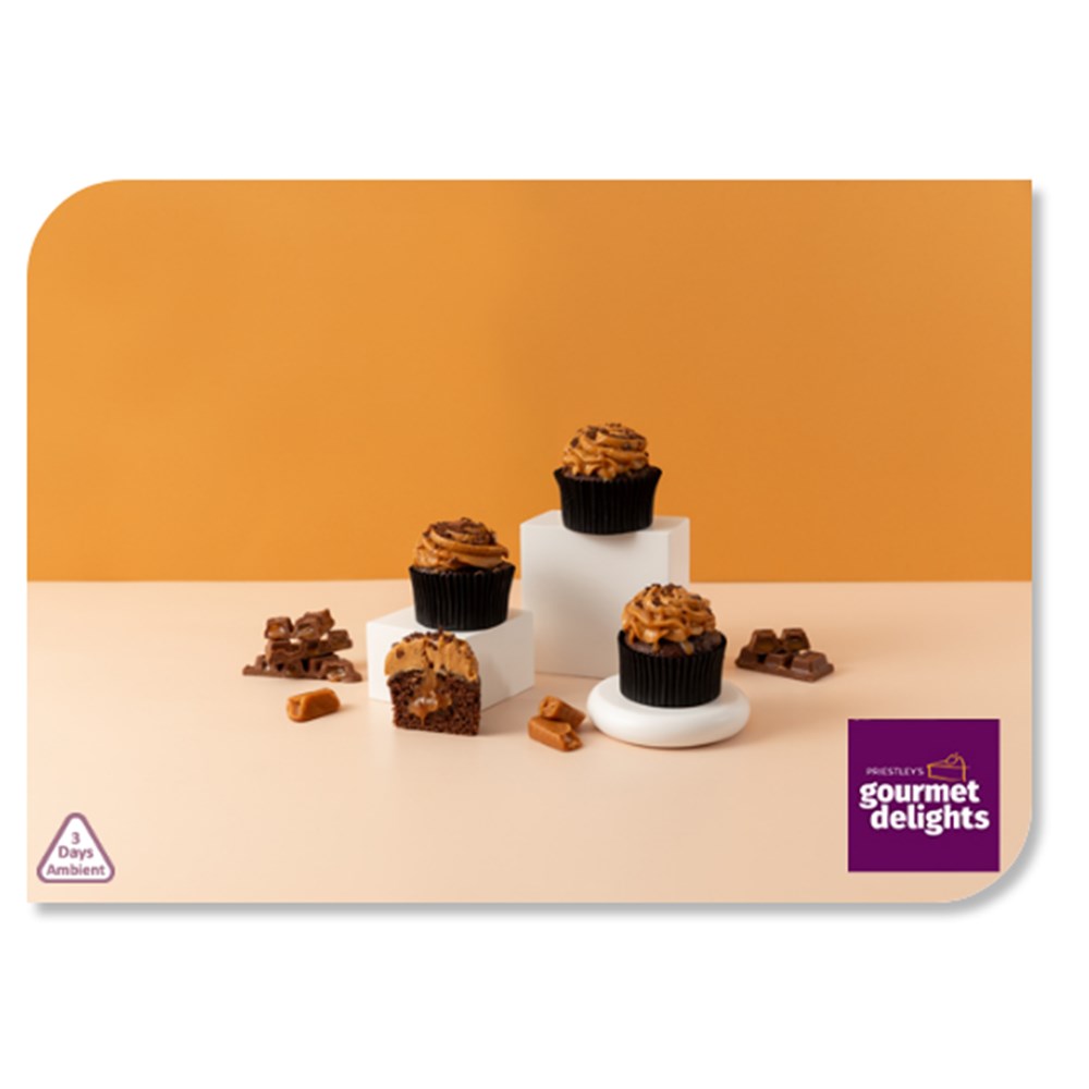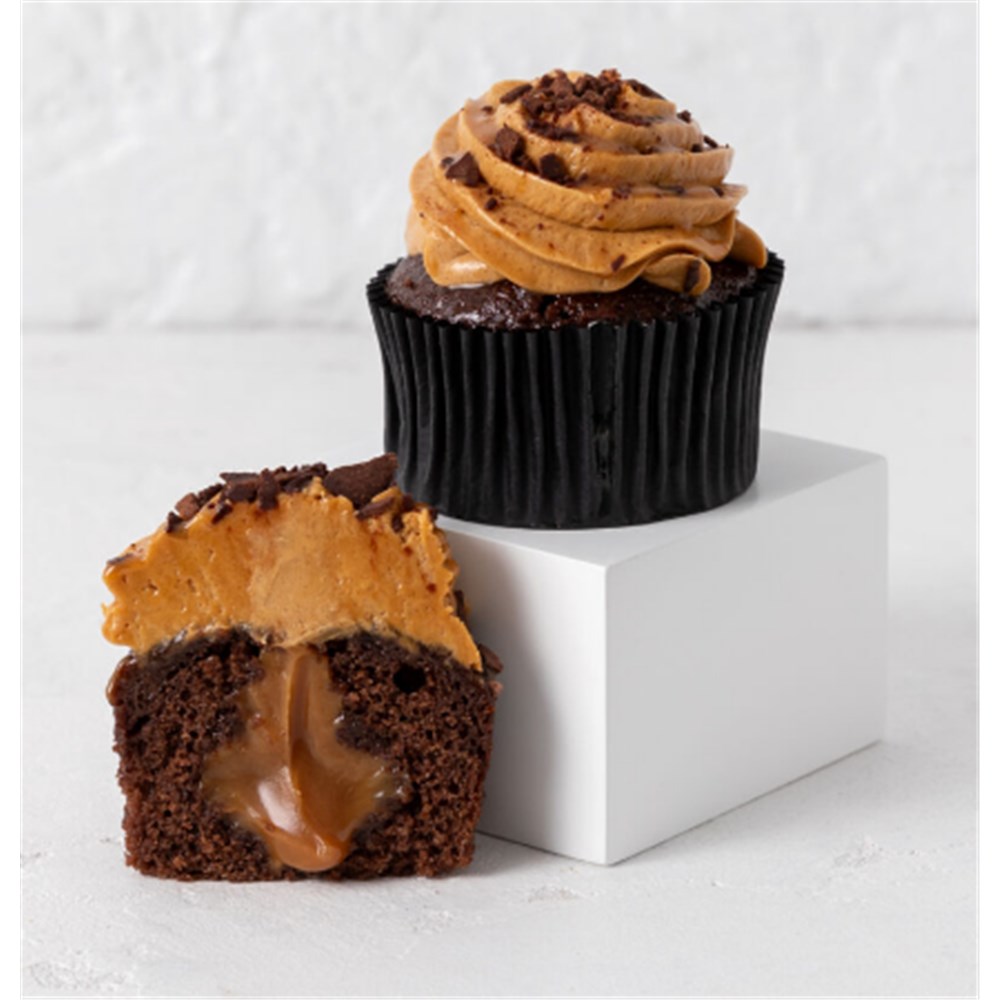 Treat yourself to a light chocolate cupcake filled with gooey caramel. Iced with caramel buttercream, and finished with a caramel drizzle and milk chocolate shavings. A throwback to classic favourites like Caramello Koala, Rolo and more.